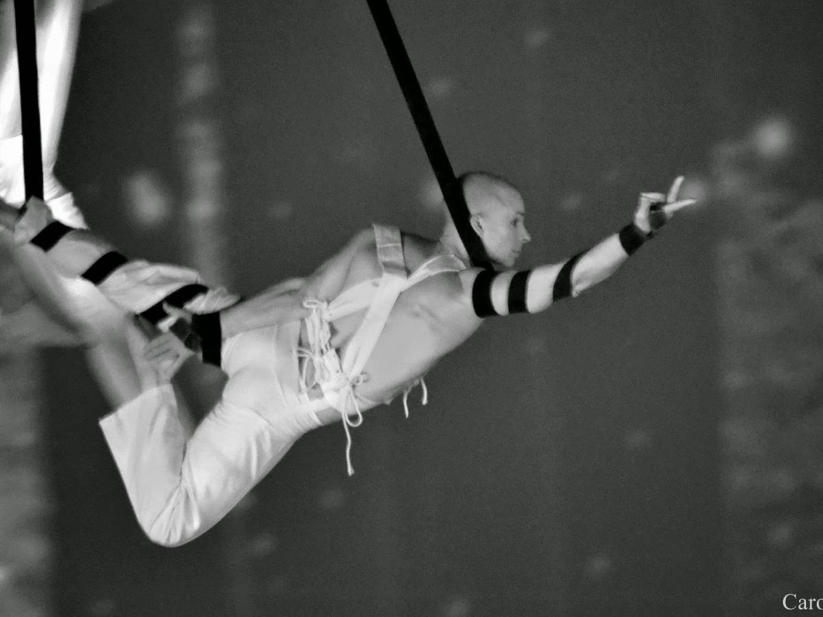 Joaquim Gouveia découvre le cirque à 33 ans à l’école de cirque des Noctambues à Nanterre. Il suit la formation de l’école nationale de cirque Annie Fratellini et fait son premier spectacle de sangles aériennes au cirque Romanès à Paris en 1998. Il a ensuite travaillé avec les compagnies Le Cirque (Argentine), Festival de circo de Belo Horizonte (Brésil), à l’Opéra Bastille sous la direction de Colline Serreau, avec la Cie Acronte, la Cie Lunatic, la Cie Armance Brown, Bruno Krief, et a collaboré avec Maria João Pires, Vo’Arte, et André Sardet au Portugal.