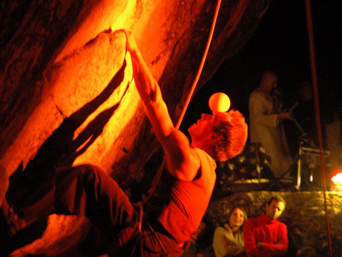 Malo Le Roy est diplômé d’escalade et jongleur. Il poursuit une recherche artistique singulière où se mèlent jonglage avec des piolets de montagne, balle contact/escalade, danse escalade sur diverses structures, manipulation d’objets.