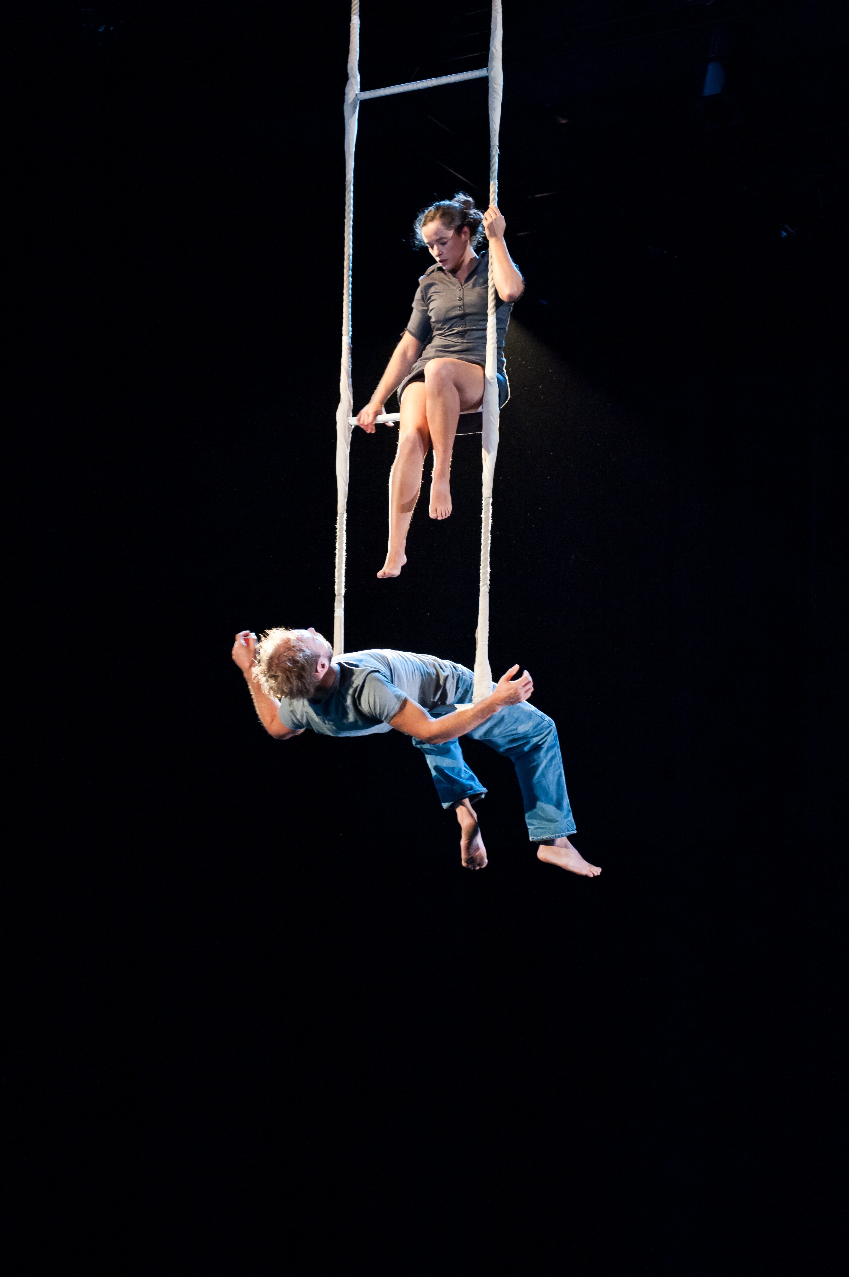 Les Desastronauts, c’est Raquel Veganzones et Giricho. Ils forment une compagnie mi-britannique, mi-espagnole, spécialisée dans l’acrobatie aérienne contemporaine. Tous deux sont diplômés de Circus Space à Londres, et sont spécialisés dans les aériens.