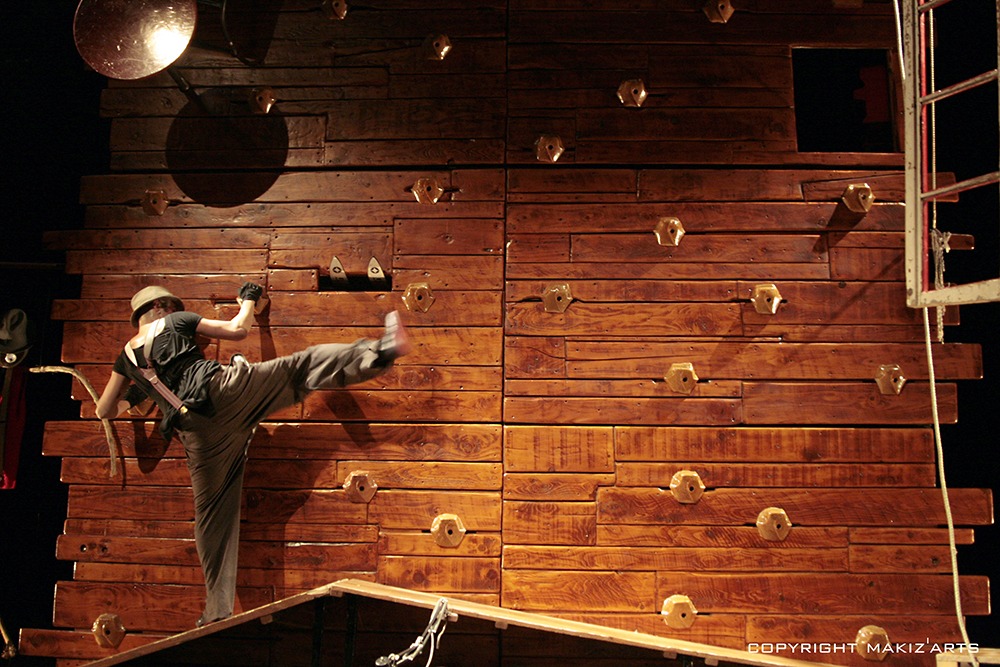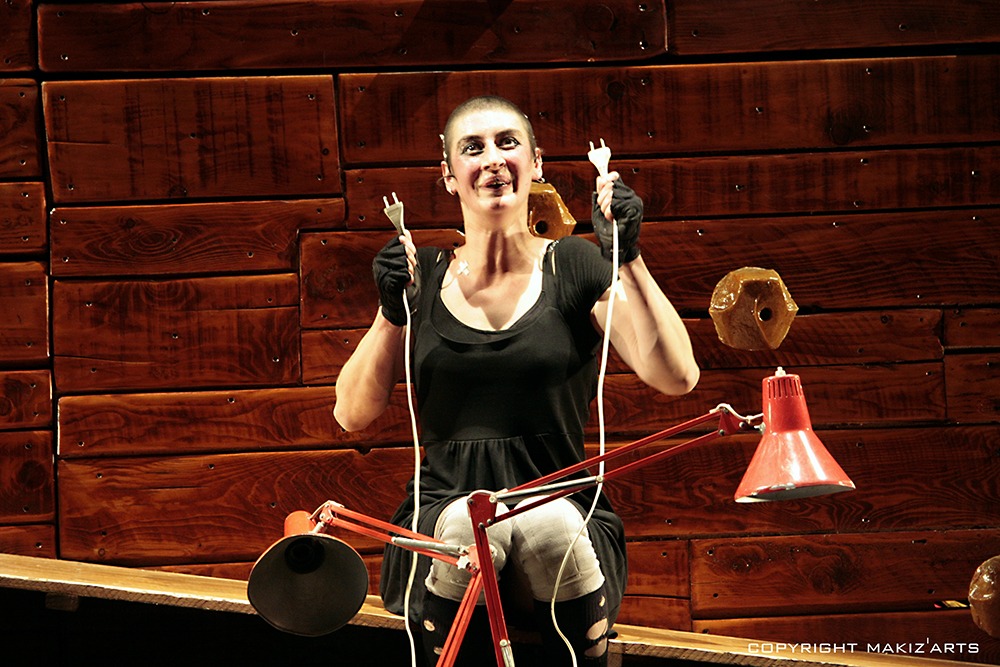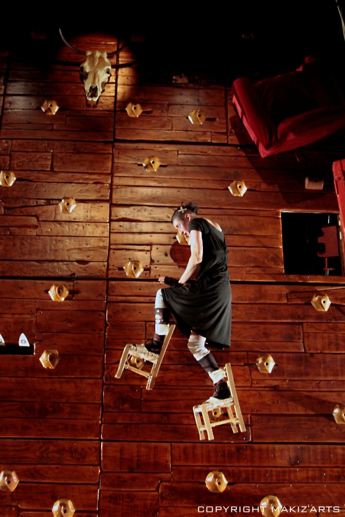 Avec »Rien dans l’buffet », son clown franchit une nouvelle limite dans la folie. Sortir du mur d’escalade lui permet de renforcer sa gestuelle et lui donne plus de liberté. Elle prolonge son exploration sur la solitude et nous emporte dans une histoire pleine de rebondissements.